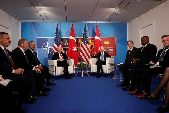 Başkan Erdoğan dün Madrid'e gitmeden önce yaptığı açıklamalarında ABD Başkanı Joe Biden'ın görüşme isteğine bulunduğunu belirtti. Başkan Erdoğan buradaki açıklamalarında "Sayın Biden ile bir görüşme yaptık. Tekrar bir araya gelme arzusunu iletti ve biz de "olabilir" dedik. F-16 konusunda oyalama taktiği var. Bunlar görüşülecek. Kararlı duruşumuzdan taviz vermeyecek, aynı şekilde yürüyüşümüzü sürdüreceğiz." ifadelerini kullandı.